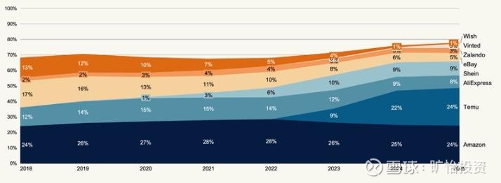 3跨境电商包裹量份额,2025TEMU在跨境的包裹量份额到达了24%左右,未来可能大概率放慢步伐了。 拼多多主站也是先从包裹量突围的。