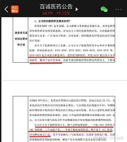 $百诚医药(SZ301096)$ 张夏衡透露:“我们已与一家抗癌药物中间体合成企业达成合作,经企业初步估算,采用新工艺后成本有望显著降低。”百诚医药7月调研里表示BIOS-0635 是公司重点推进项目,适应症为肿瘤药,开发 KAT6 靶点的小分子创新药,拟用于治疗实体瘤。公司在大分子创新药项目上,四个品种进展较好,一个抗 CD24 品种处于 IND 前阶段,三个双抗产品,一个处于临床体验阶段,两个处于 PCC 阶段,均为癌症相关产品。百诚医药9月公告用于缓解成人癌痛的BIOS-0623-Z4片获批。所以说的是你?