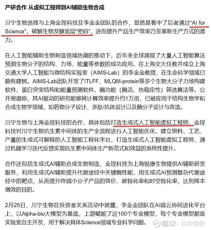 今天合成生物启动,蔚蓝生物、华恒生物、凯赛生物大涨,合成生物基本上都是AI4S,而且大盘从3000点到4000点生物制药板块基本没涨(创新药好歹去年还涨过一波),这波生物制药+AI可以看看。AI for Science