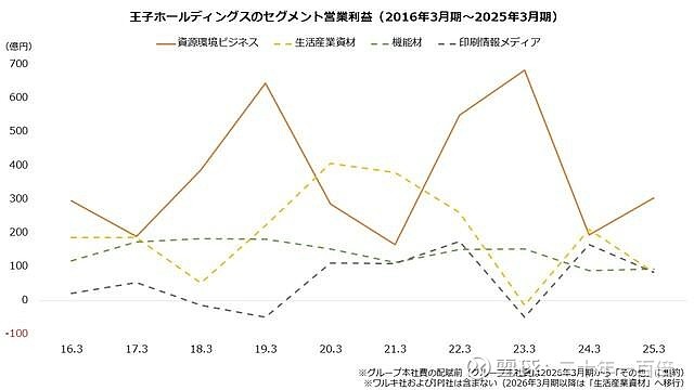 王子ホールディングスのセグメント営業利益(2016年3月期~2025年3月期)