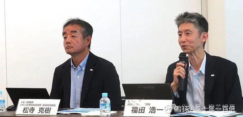 在说明会上登台的Kioxia的福田浩一(右)和松寺克树
