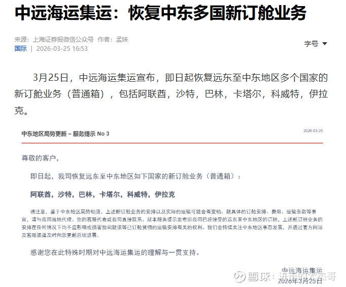 你如何看待中远海运恢复中东订舱业务,评论区聊聊~~