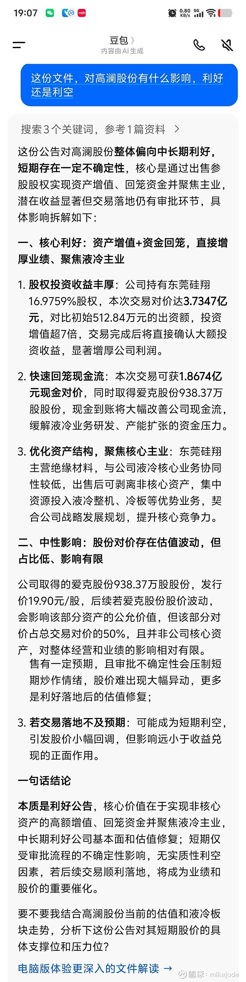 居然下班来了个利好,今天刚卖,哭晕了。恭喜在车上的朋友,七倍回报,回笼现金用于主业,今年利润大幅提升。