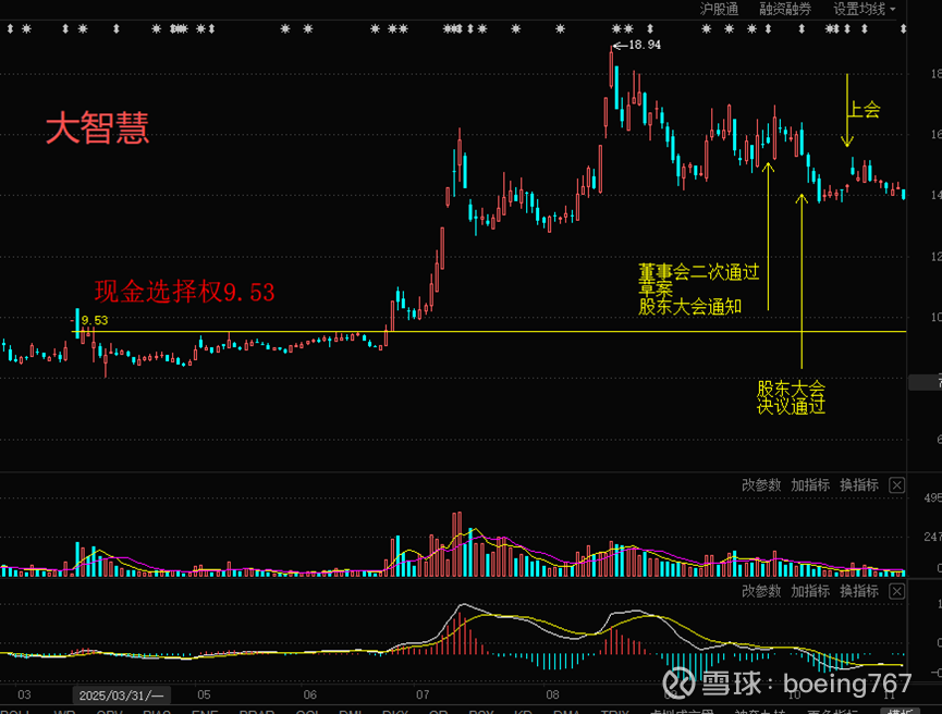 市场永远正确,市场的担忧非常合理,如果后市股价不站上现金选择权,失败的概率非常大,反之则会成功(因果请勿搞反)。类似的参考湘财股份吸并大智慧(下图)。