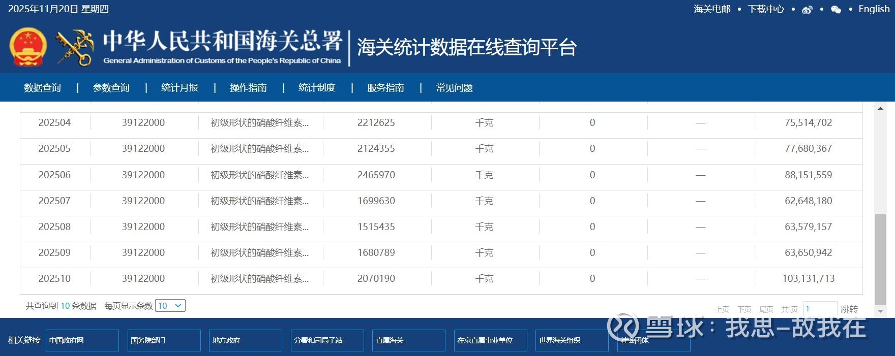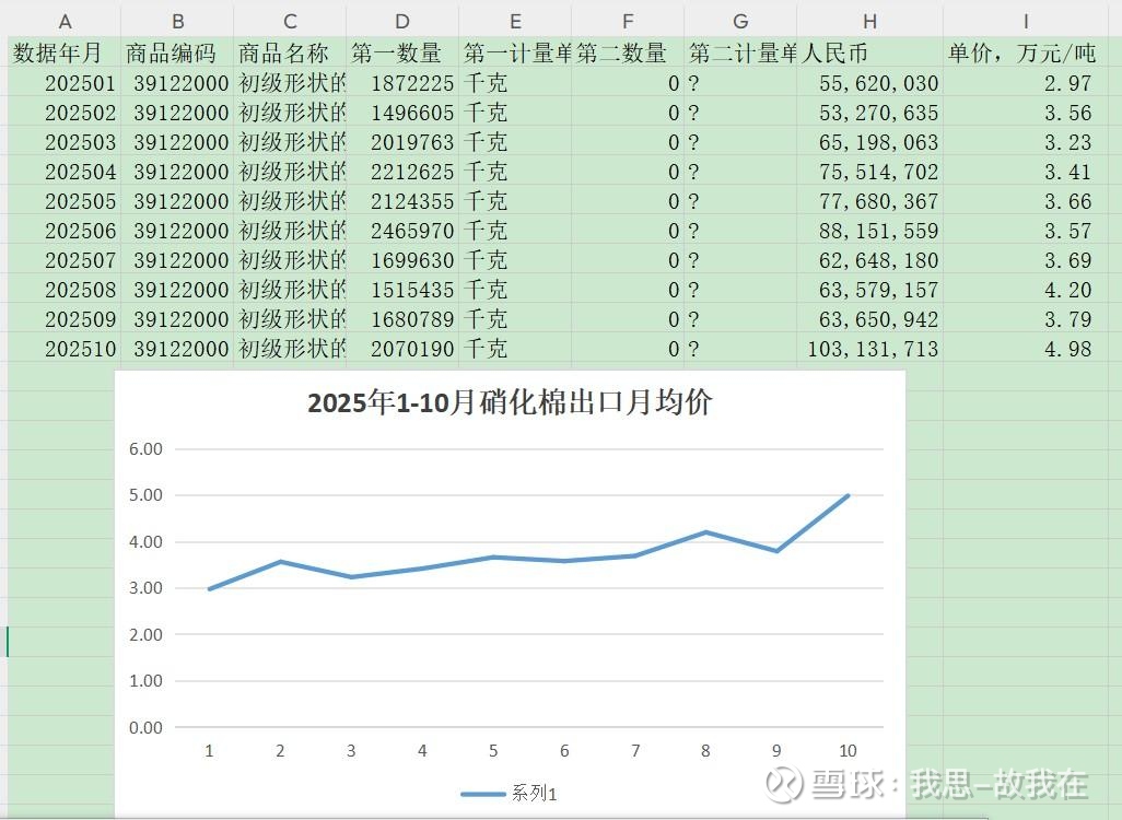 本文在此更新一下海关刚出来的硝化棉10月份的出口价格: