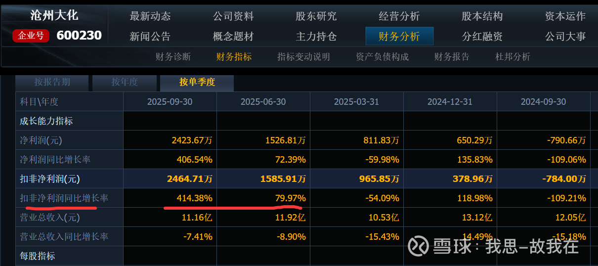 今年前三季度,沧州大化扣非净利润同比增长128%,第三季度扣非净利润同比增长414%!
