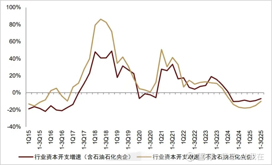 (1)石化行业资本开支增速变负,五年一轮回,2026年将是石化行业周期大反转之年。