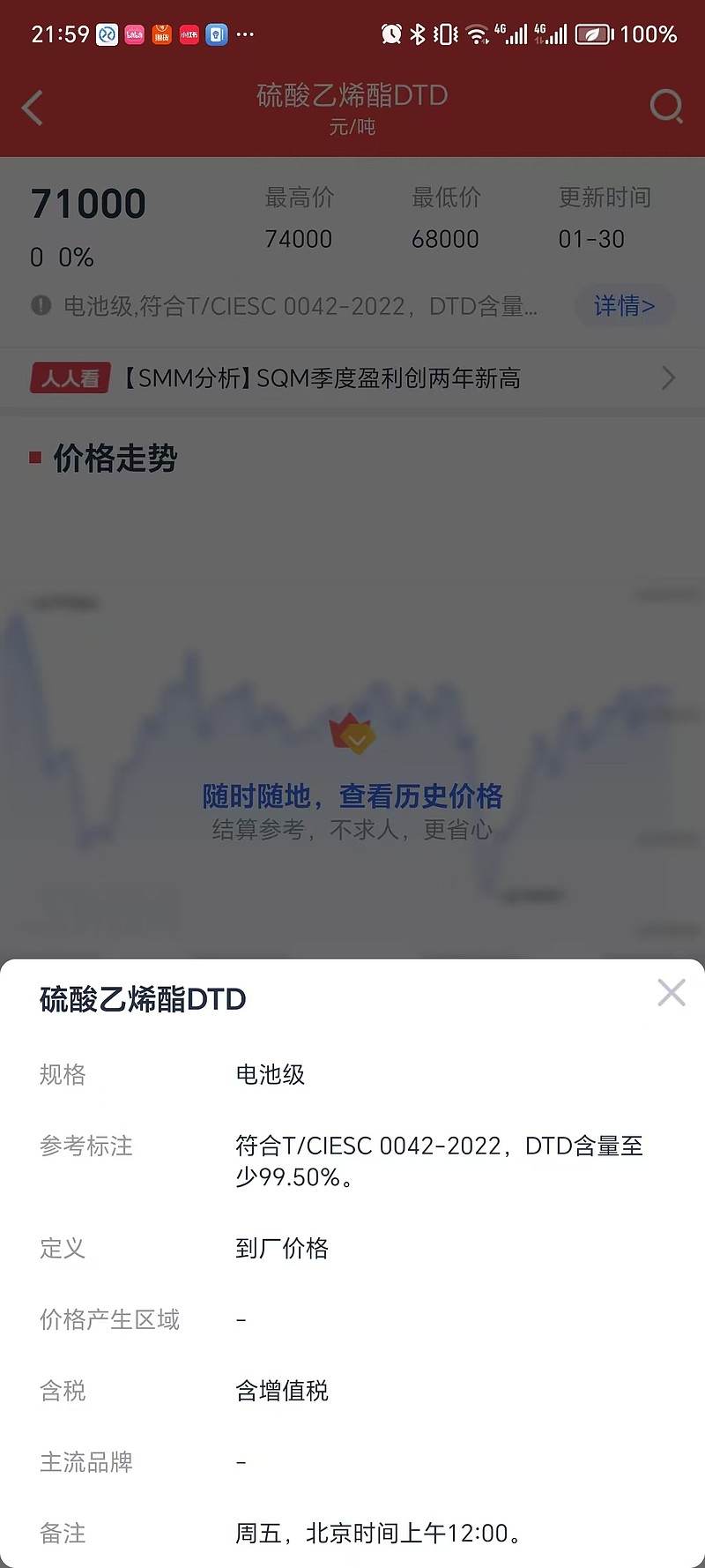 本周硫酸乙烯酯DTD的价格