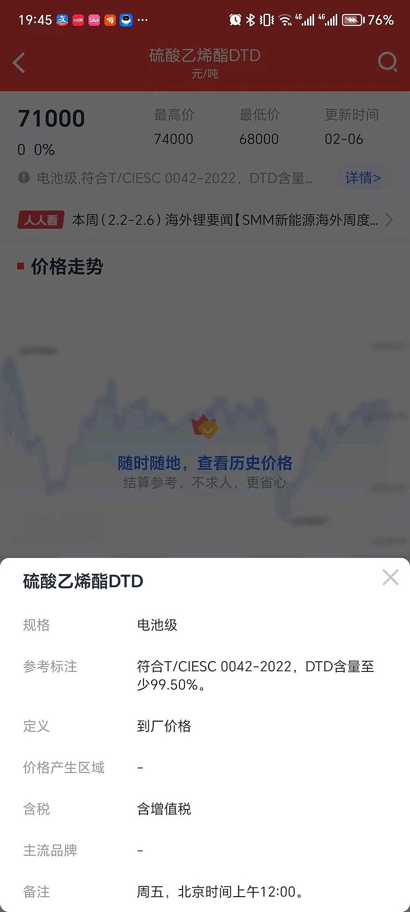 本周DTD和上周价格持平,保持在高位