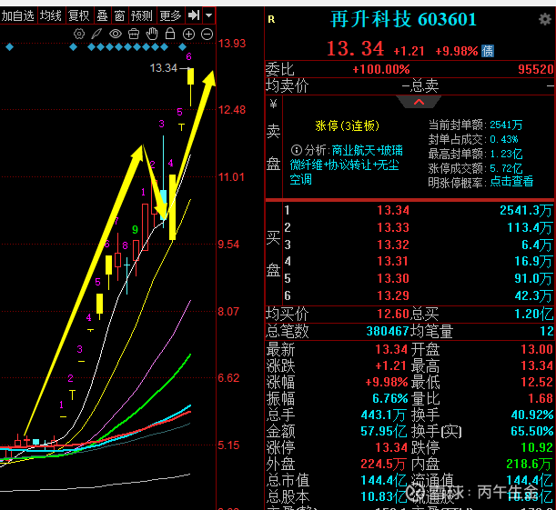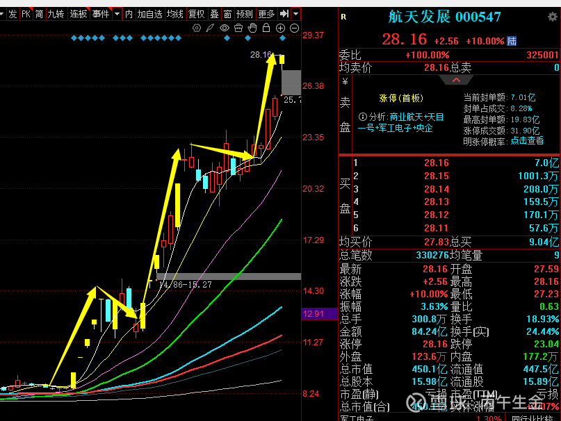 你再来对照以上大行情题材的几点,是不是基本上都已经完成,基本上都已经实现,主升浪结构已经走的很完整,所以,目前商业航天处于跌停潮暴跌前的最后阶段,