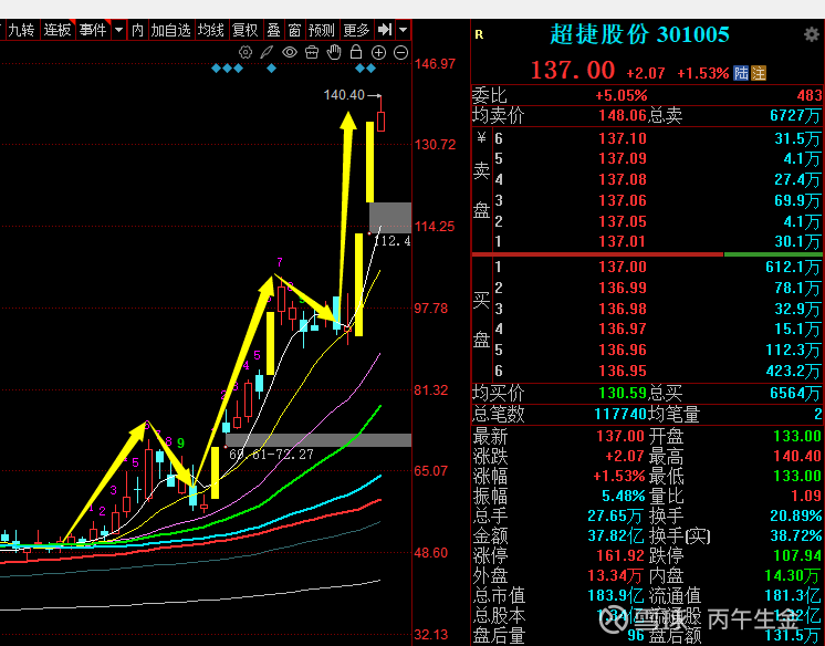 1)龙头大约有3轮主升浪,构成波浪理论里面的完整推动浪。