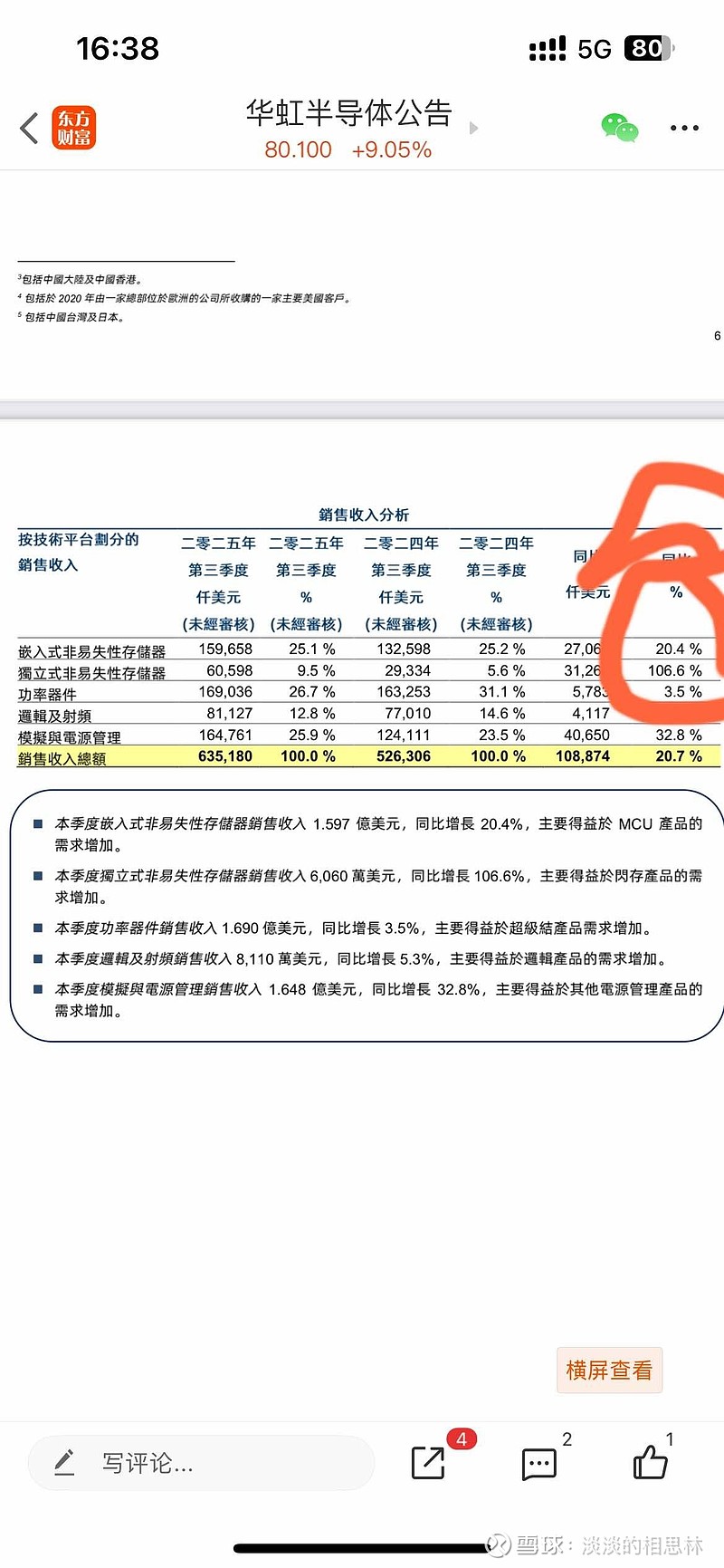 华虹半导体这个非易失存储器主要就是nor flash这种闪存代工,大客户就是姨妈三季度居然拉了这么多货,Q4和明年可期$兆易创新(SH603986)$ $华虹半导体(01347)$ $美光科技(MU)$