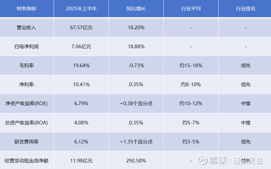 2025年上半年,公司实现营业收入67.57亿元,同比增长18.20%;归母净利润7.06亿元,同比增长18.88%;扣非净利润6.87亿元,同比增长23.24%。2025年第二季度单季度主营收入36.63亿元,同比增长10.85%;单季度归母净利润3.84亿元,同比增长9.35%。