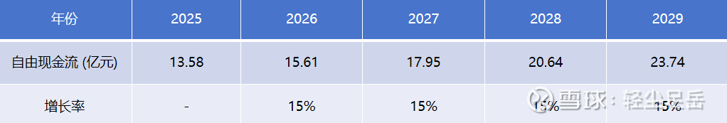 增长率:2025-2029年复合增长率为15%,永续增长率为4%。