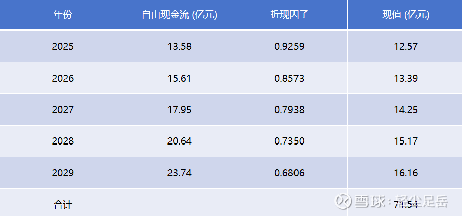 永续期价值=2029年自由现金流×(1+永续增长率)÷(折现率-永续增长率)