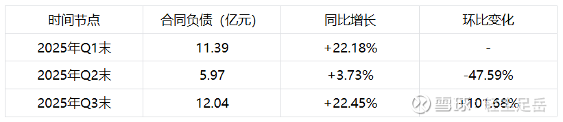 2025年第三季度末,公司合同负债达到12.04亿元,创历史新高: