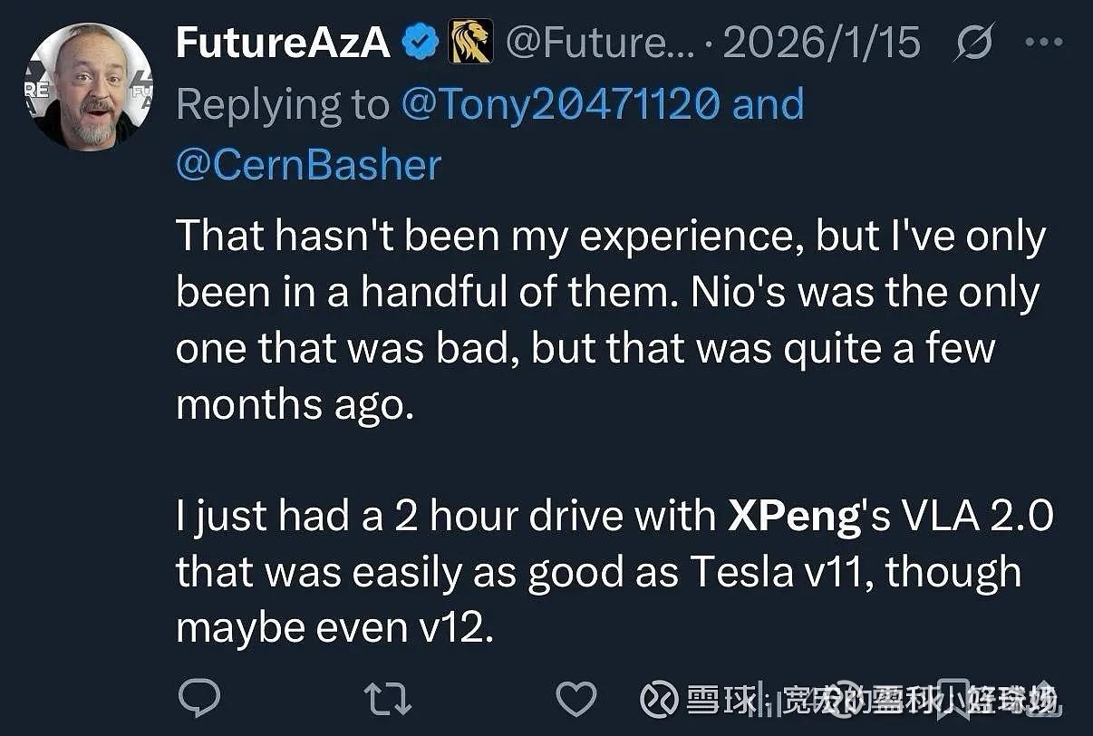 大家即不要对小鹏的VLA2.0有过高的期待,仿佛2.0一问世就可以碾压理想、华为一众竞争对手,别忘了小鹏在进化,其他家也在全力赶超,都在山寨特斯拉,凭啥你要期望唯独小鹏的山寨版最牛掰一定能断代领先?你刘先民一人就足够单挑全中国的顶尖科技人才了?就不允许其他家你追我赶共同进步?