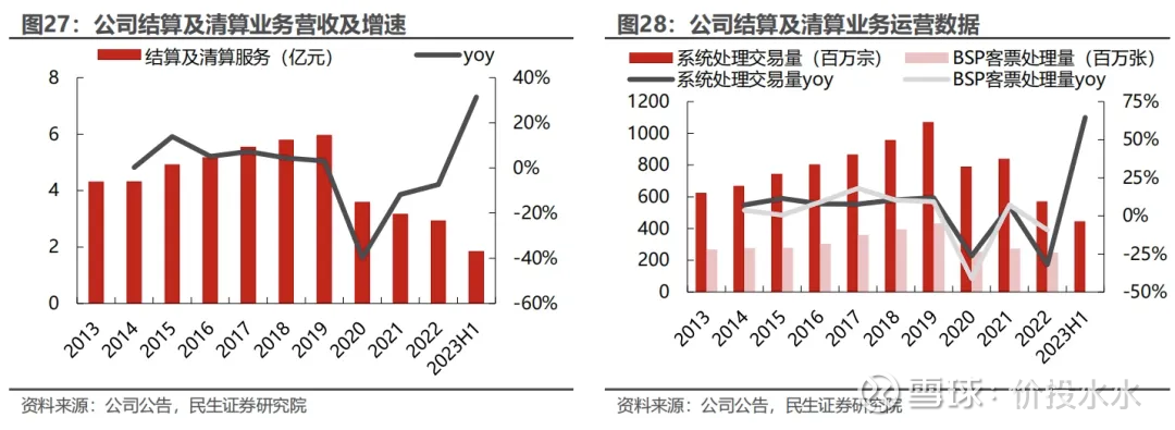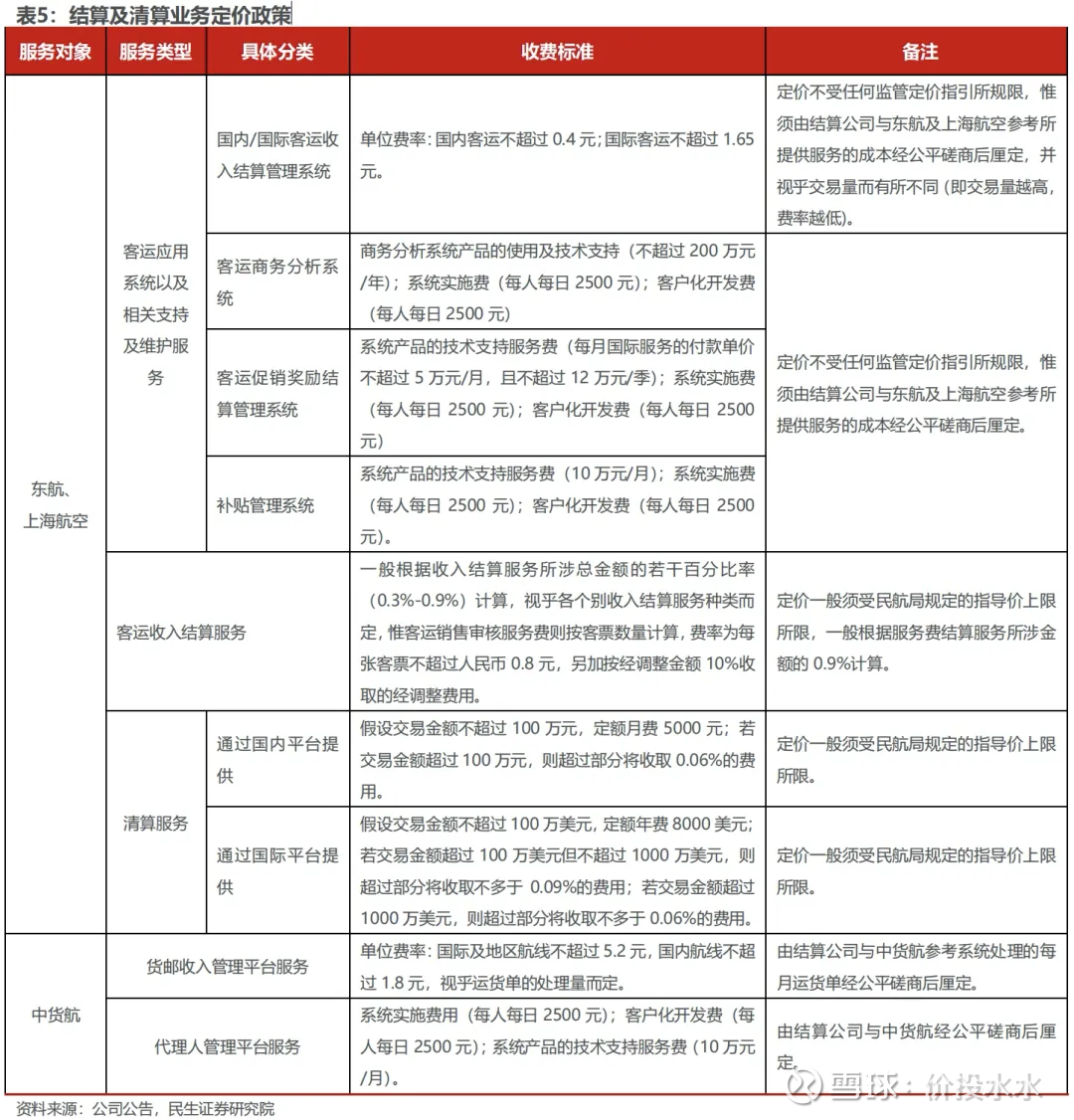结算及清算服务这块业务,跟 GDS 业务一样,属于具备垄断性质的业务模块。从增量维度看,该部分业务的成长性取决于接入中航信结算清算系统的航空公司、机场、代理和政府机构等的数量增长,从价格维度看,客运部分的结算服务价格及货运部分的结算服务价格,理论上不受民航局指导,由双方协商确定。客运部分的清算服务价格受民航局指导价管控。