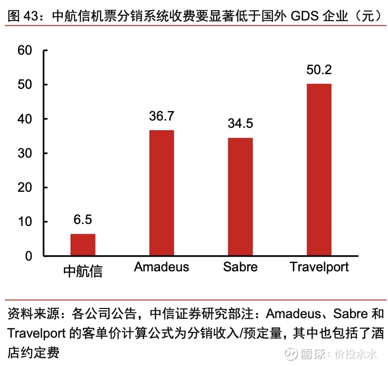 从全球GDS的客单价来看,国外的三家 GDS 分销商的定价是中航信客单价的 5 倍以上,虽然中航信的 GDS 分销定价受民航局的管控,但是这里面是有提价动能的,提价 5 倍是不太可能的,这里我们取一个比较保守的提价预测,提价 1 倍。