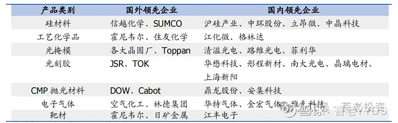 最近政策有意引导资金去化工板块,半导体化工机会开始出现。半导体材料是具有半导体特性的电子材料,广泛应用于集成电路、分立器件、传感器和光电子器件等产品的制造。与普通材料相比,它对精度和纯度等方面的要求更为严格,前端晶圆制造材料包括硅片、电子气体、掩膜版、光刻胶及其配套材料、湿电子化学品、靶材、CMP 抛光材料等。