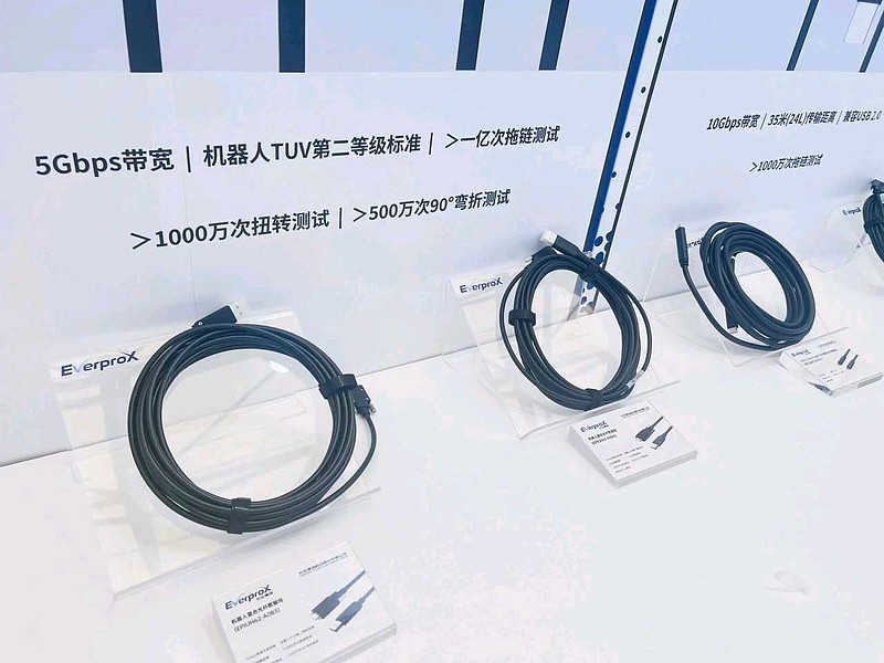 长芯博创展出的多款全球首发及定制化产品,专为机器视觉领域量身打造,用光纤替代传统铜芯,支持更长传输距离、线身更轻细柔软、无辐射抗电磁干扰、通过各类严苛的可靠性测试,彻底打破了传统铜线在距离、性能、寿命上的多重限制,完美适配各类工业级应用环境。
