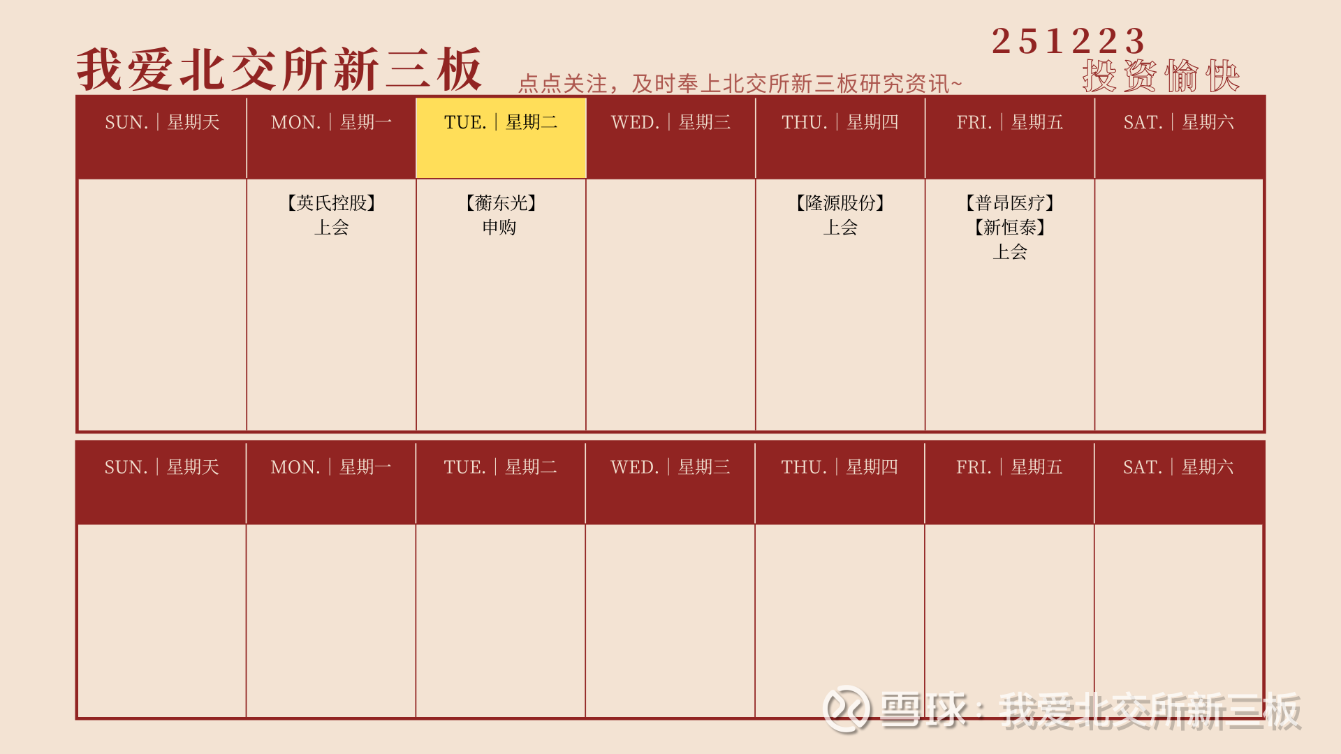 今日$蘅东光(BJ920045)$ 申购,申购代码920045,发行市盈率为14.99倍,申购价格每股31.59元,申购上限46.12万股,上限金额1456.93万元,申购资金需提前全额存入账户。本次发行共有2名投资者参与战略配售:招商资管蘅东光员工参与北交所战略配售集合资产管理计划、招商证券投资有限公司。