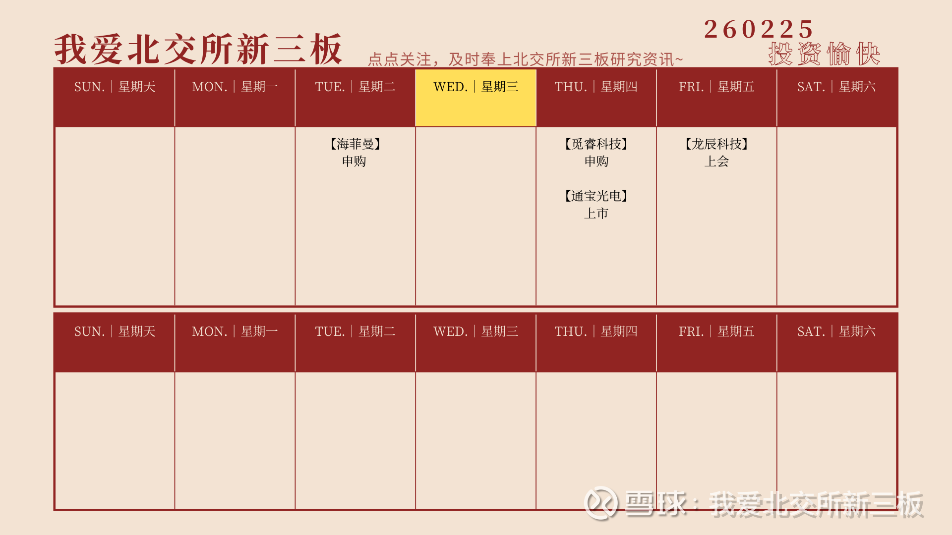 【觅睿科技】周四申购,证券代码“920036”,发行价格为21.52元/股,但申购上限不超过61.22万股。国信资管觅睿科技员工参与北交所战略配售集合资产管理计划、国信资本有限责任公司 2家公司参与战配。