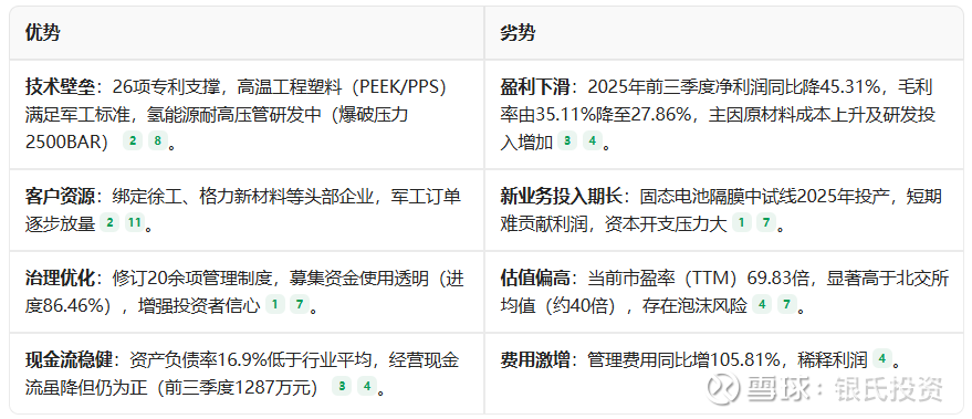 短期驱动: 军工订单落地(耐高压管用于加氢枪总成等),2025年树脂软管产能扩产50%。 固态电池隔膜中试线投产(2025年),若技术验证成功,或获产业链合作。