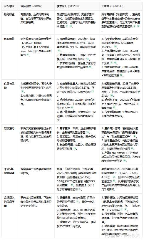 对爱科科技(688092)、信安世纪(688201)和上声电子(688533)进行对比分析。分析基于截至2026年2月1日的公开信息。