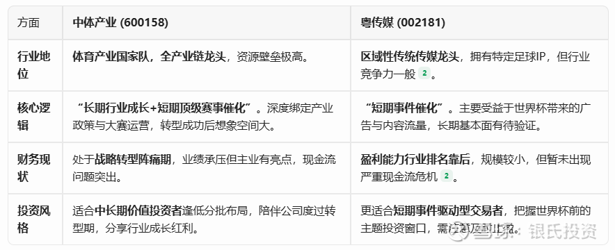 时机参考:可重点关注两个阶段:一是世界杯开幕前一年的主题预热期(即2025年),二是公司季度财报发布后,若因短期业绩不佳导致股价非理性下跌,但体育主业增长逻辑未变时。此外,有市场分析将中体产业与互联网彩票等题材进行联动观察,提示在相关题材活跃时也可能存在交易性机会。