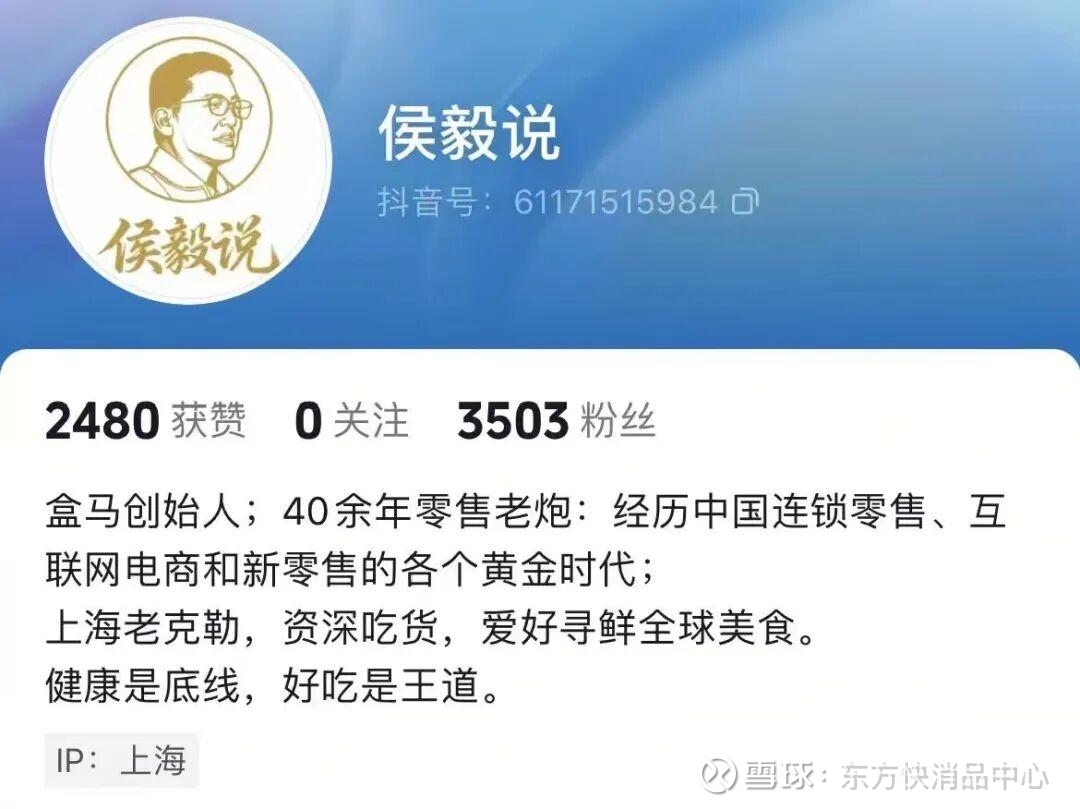 (快消品讯)近日,盒马鲜生创始人侯毅借今年9月创建的抖音美食自媒体账号“侯毅说”,推出全新创业项目“老菜芮选”,重返生鲜直播带货领域。这是继其平价海鲜烧烤餐厅“金宵一刻”、宠物食品零售品牌“派特鲜生”折戟之后的又一尝试。