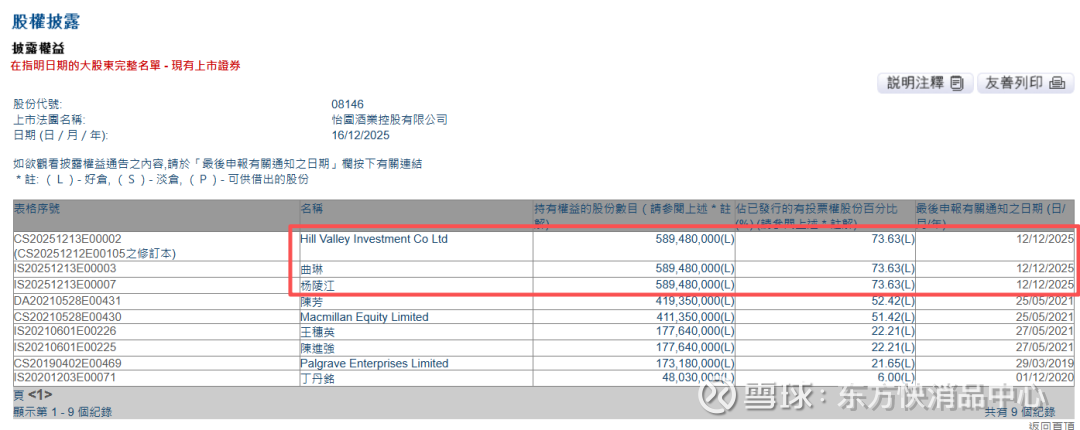 (快消品讯)昨日晚间,港交所权益披露信息显示,港股上市企业怡园酒业(08146.HK)实控人发生变更,1919集团创始人、董事长杨陵江以个人身份完成战略入股,持股5.9亿股,占比73.63%,取代原实控人陈芳成为公司新任实控人和大股东。