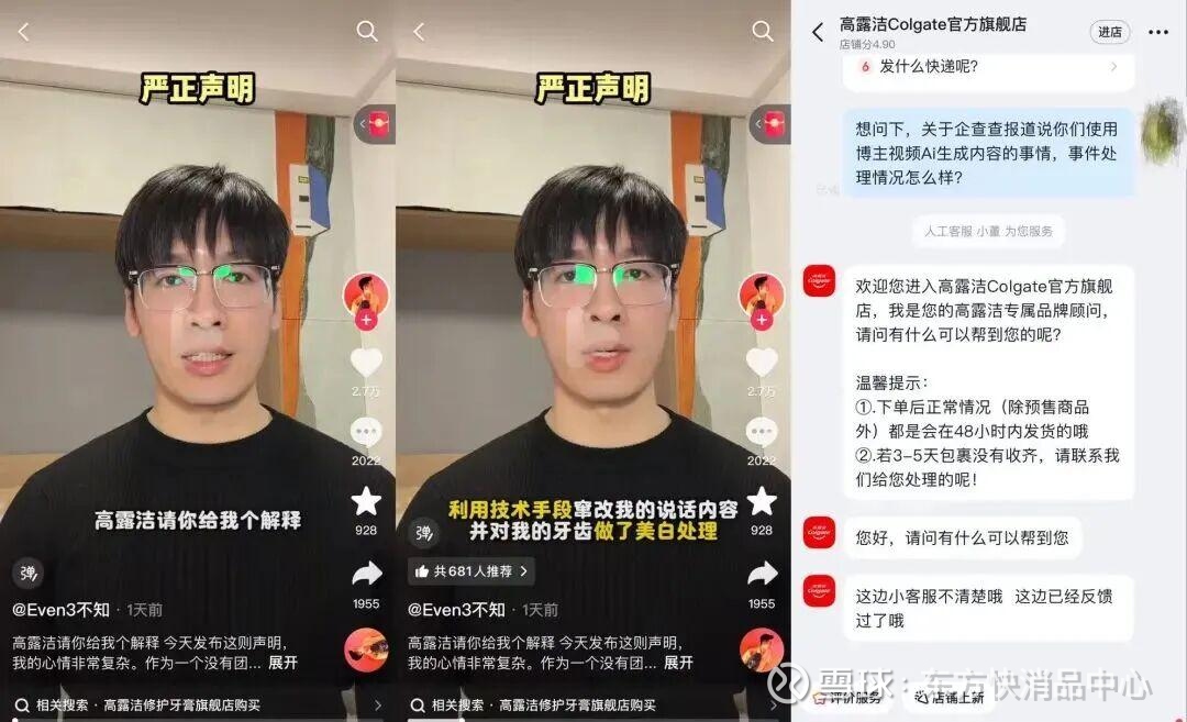 聚焦争议核心,@Even3不知在视频中明确指出,原视频是其分享通过牙贴片技术关闭牙缝的个人经历,而高露洁直播间在未经许可的情况下,不仅对视频中牙齿画面进行美白处理,更通过技术手段篡改了其说话内容,将牙贴片效果嫁接到“高露洁360牙膏”上。