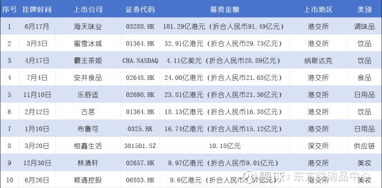 2025年中国快消品10大募资上市公司