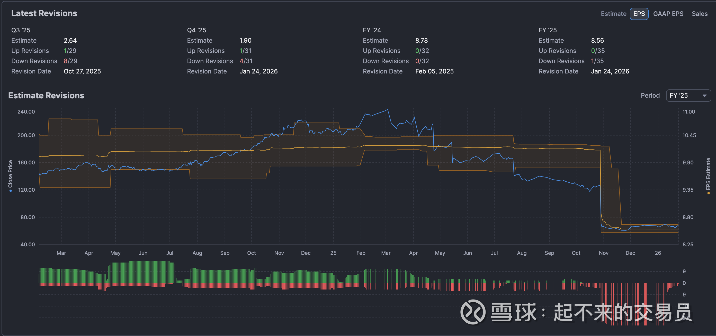 2. Secondly, he argues for the correlation between EPS and stock price. He showed a chart and it shows that both variables have moved quite consistently for the entire year of 2025, even following the 40% dip in a single day. In that case, he argues that the stock prices are not going to diverge from this, unless EPS forecasts go through the roof. He thought that such a situation was highly unlikely to happen. His view is that the focus should be on whether the stock price has deviated from EPS. Unfortunately, Fiserv is not in a position where investors can capture this opportunity.