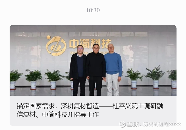 从中简公众号发布的这场调研可以看出:中国高性能碳纤维及复合材料产业,已正式跨越“材料突破”的初级阶段,正全力迈向“体系能力强大、核心技术引领、智能深度融合”的高级阶段。而确保这一进程的顺利实施,正是杜善义院士这位行业开拓者,在当下所给予的最深切期望与最务实指导。