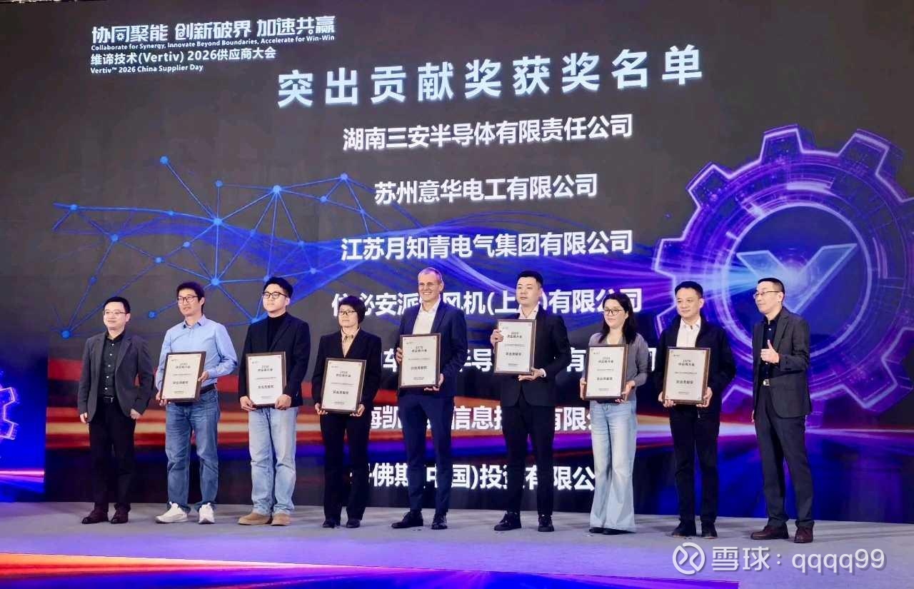 ★近日,维谛技术(Vertiv)年度供应商大会在深圳隆重召开。大会以“协同聚能、创新破解、加速共赢”为主题,汇聚核心伙伴共同应对产业变革、共谋发展。湖南三安半导体凭借卓越的产品力与稳定的供应保障,在会上荣膺“突出贡献奖”。这一奖项不仅是维谛对三安半导体过去合作的最高肯定,更是对其作为SiC(碳化硅)功率半导体领域中坚力量的技术实力与未来潜力的权威认证。查看图片