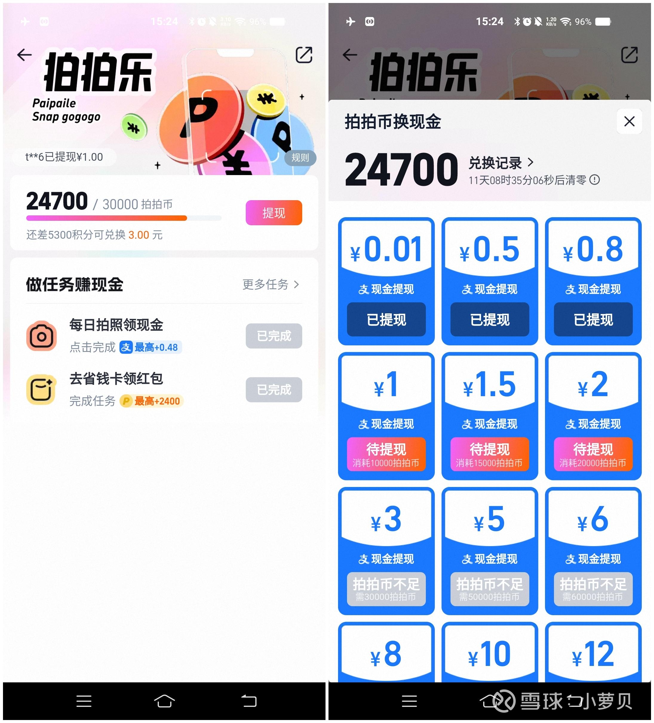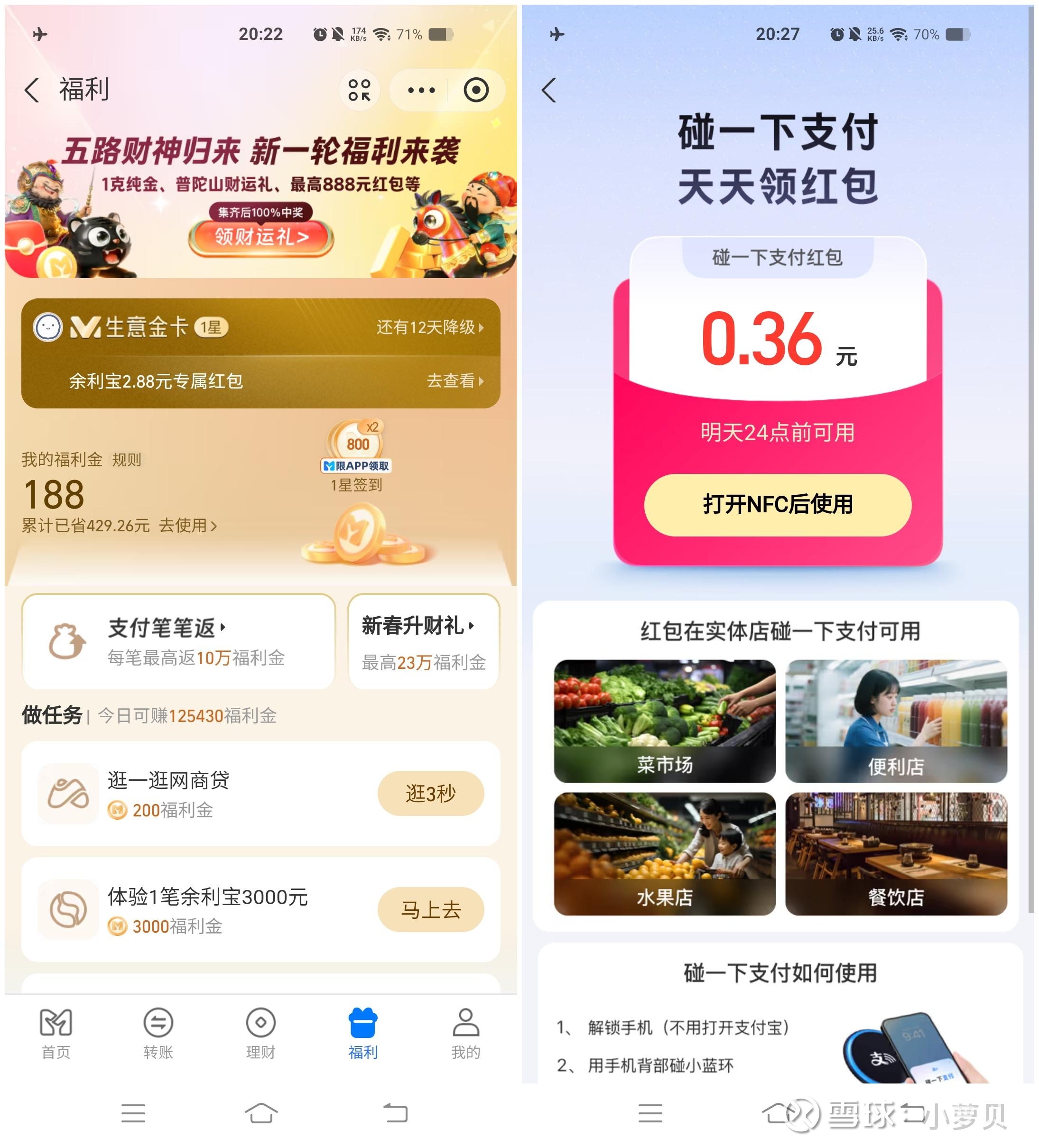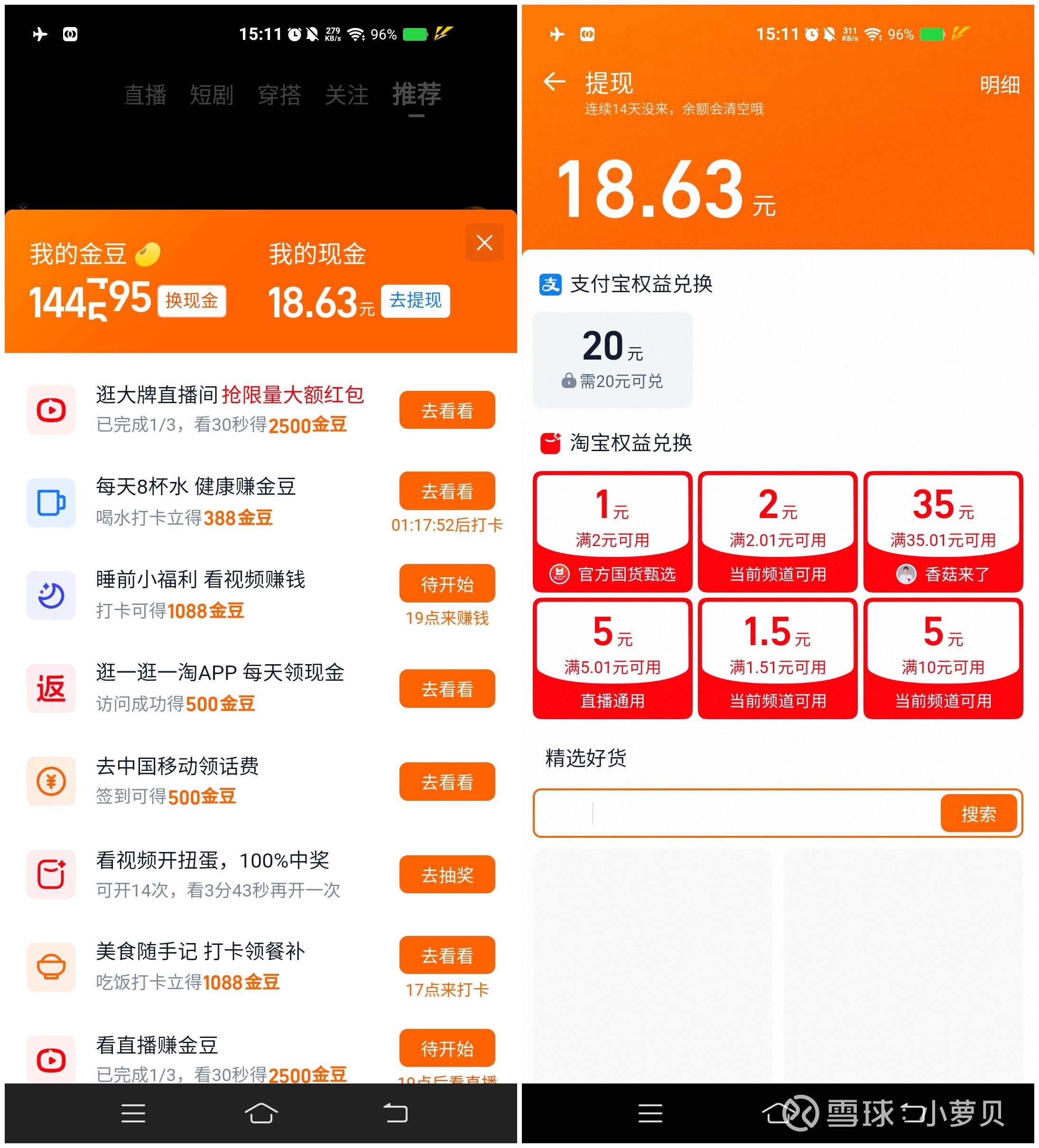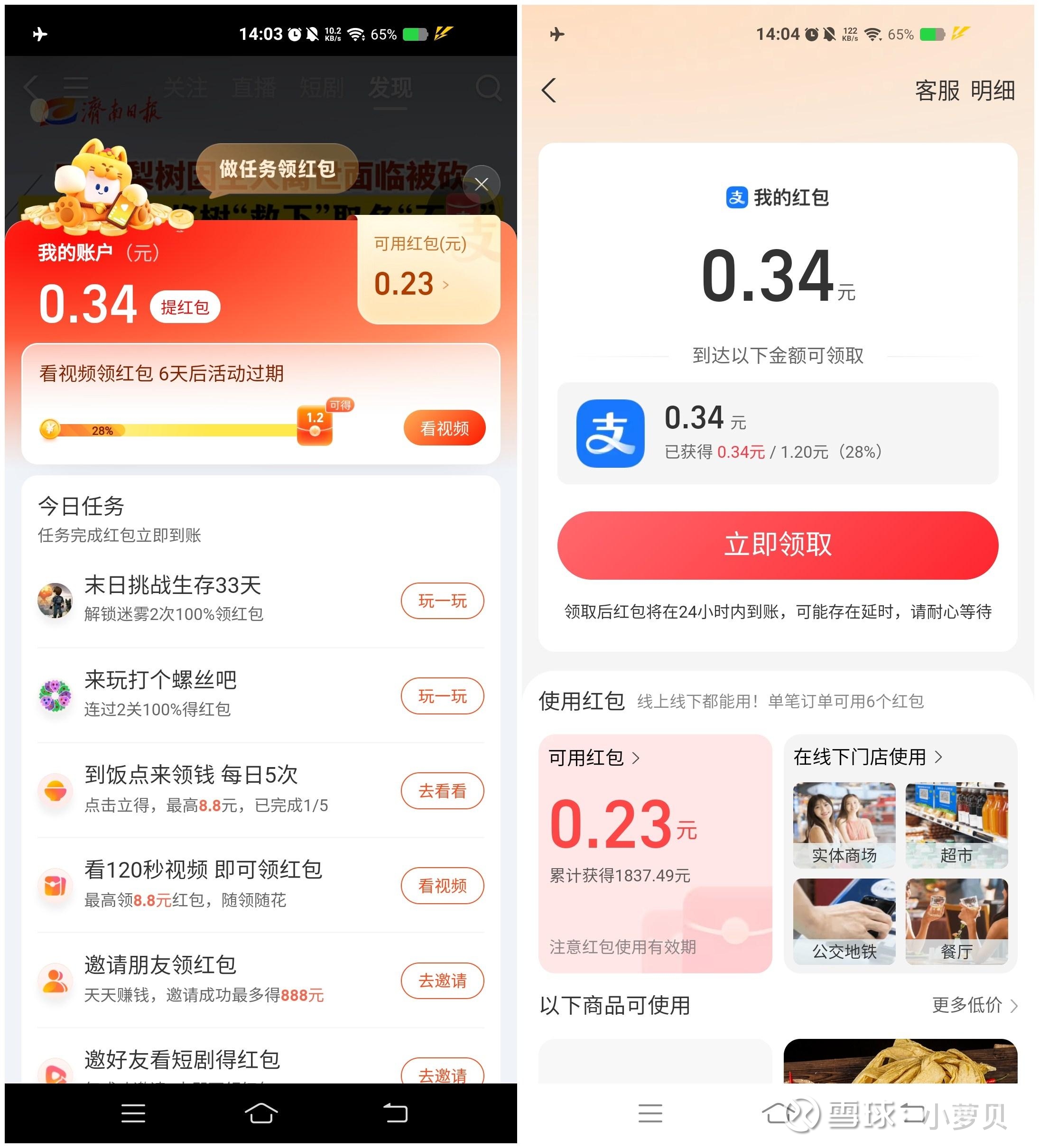 完成任务领取数额不等现金红包,可用于日常消费抵扣,水电气话费缴费。