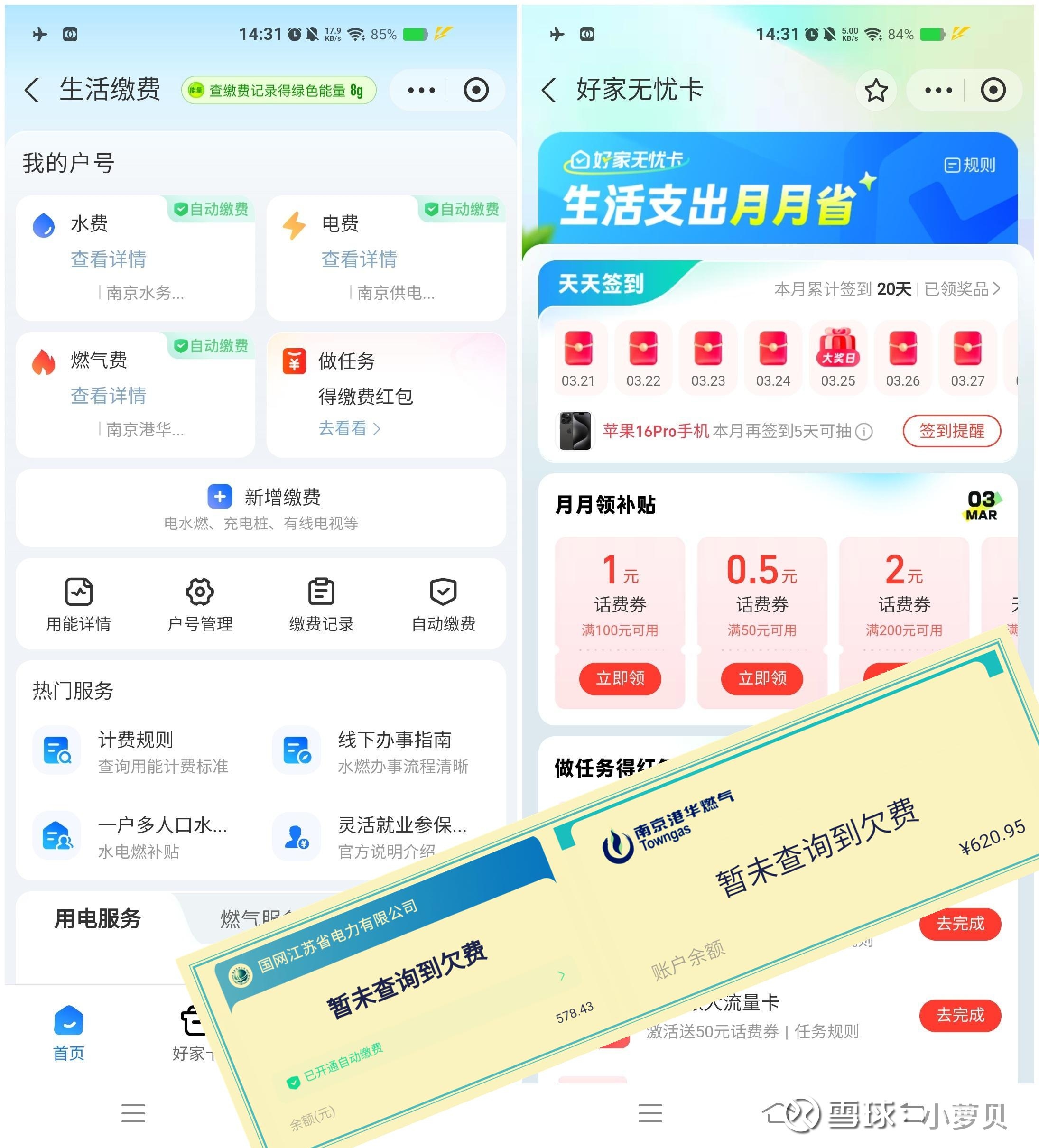 萝贝已经积攒了578.43元的电费和620.95元的天然气预存金了,没花一分钱!