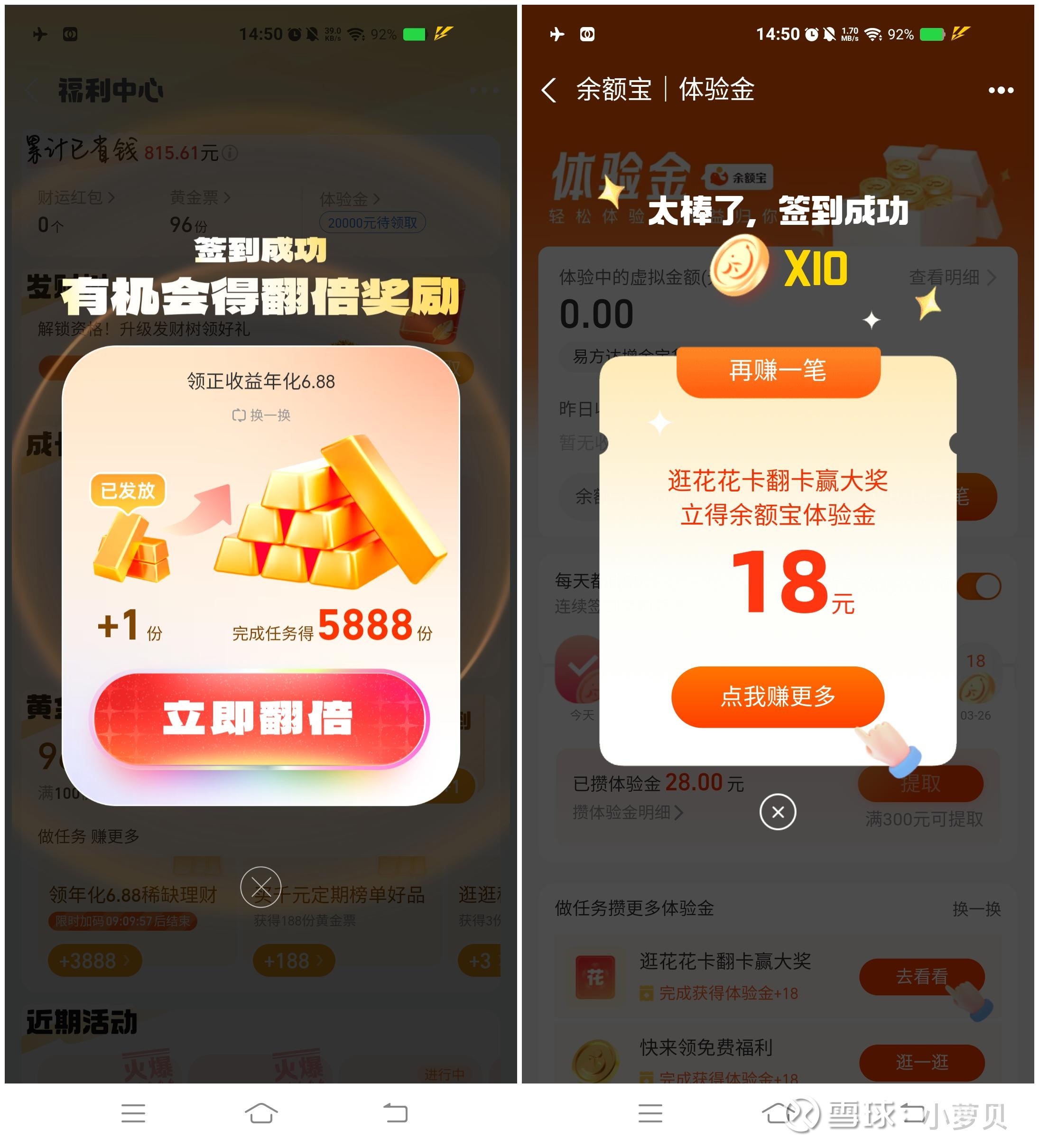 每天签到 完成任务获得10元现金 是滴!不是红包是现金~