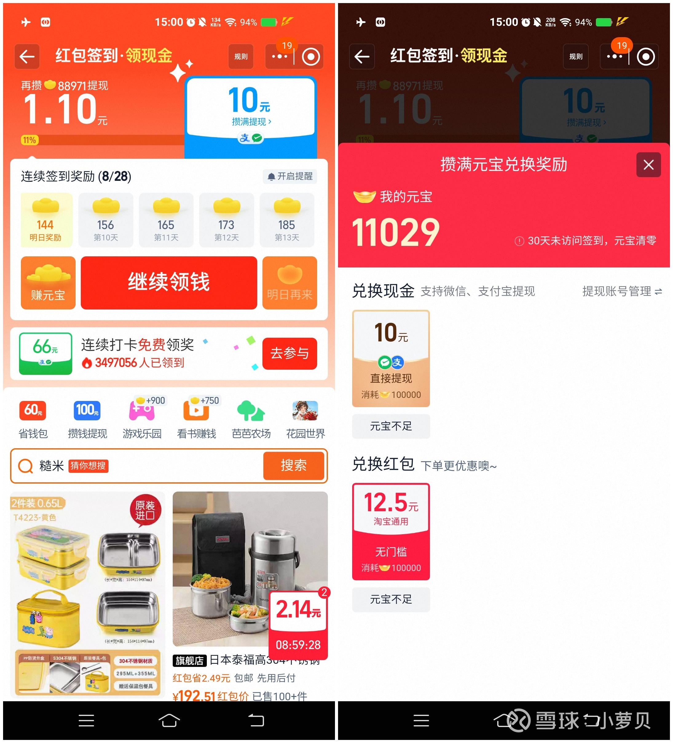 每天签到 完成任务获得积分 结合红包可实现零元购 。。。