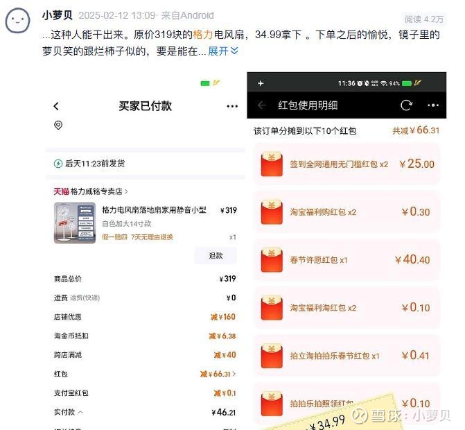萝贝去年的34.99元的格力电风扇就是这么薅的。。。哈哈~~~