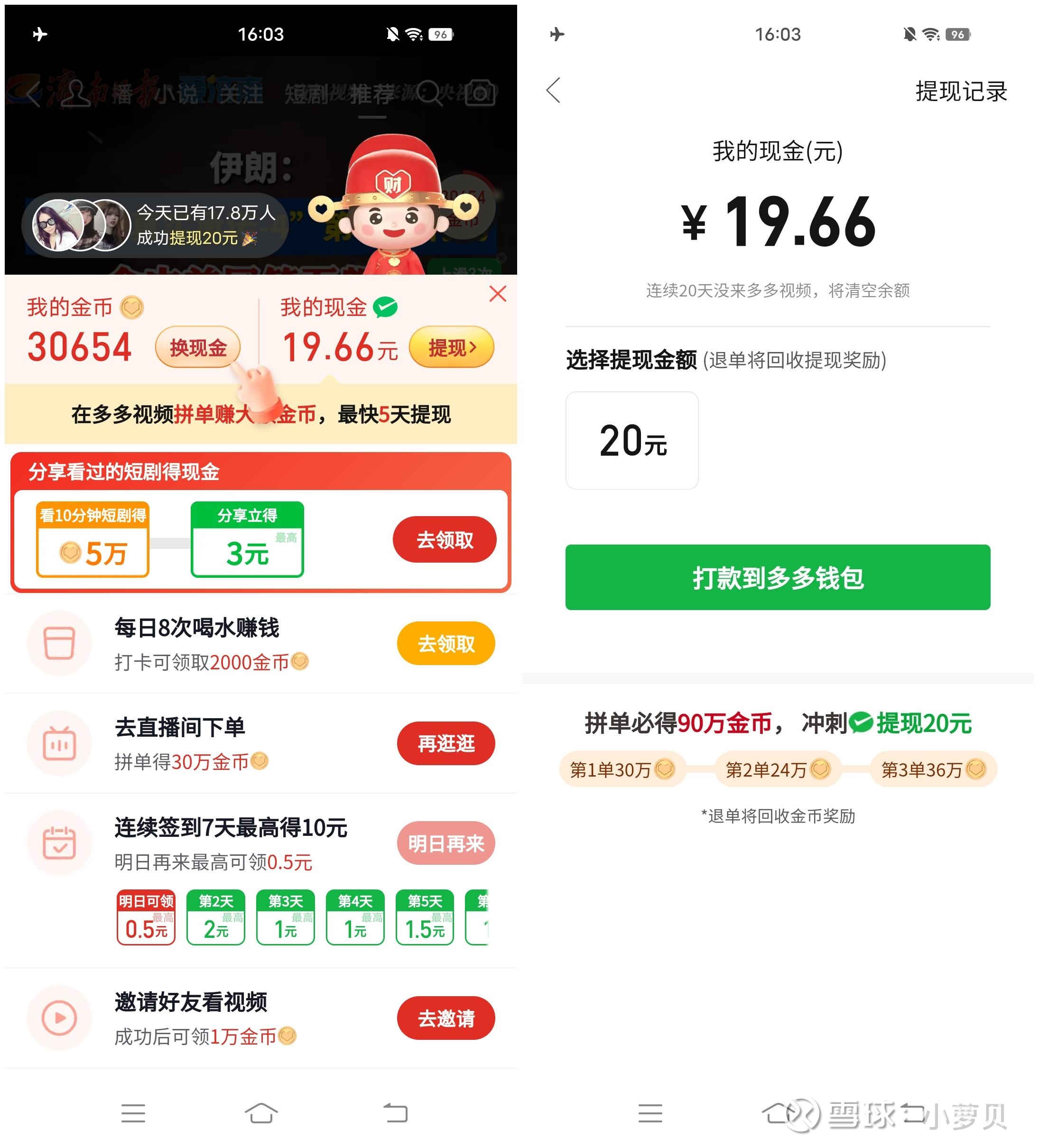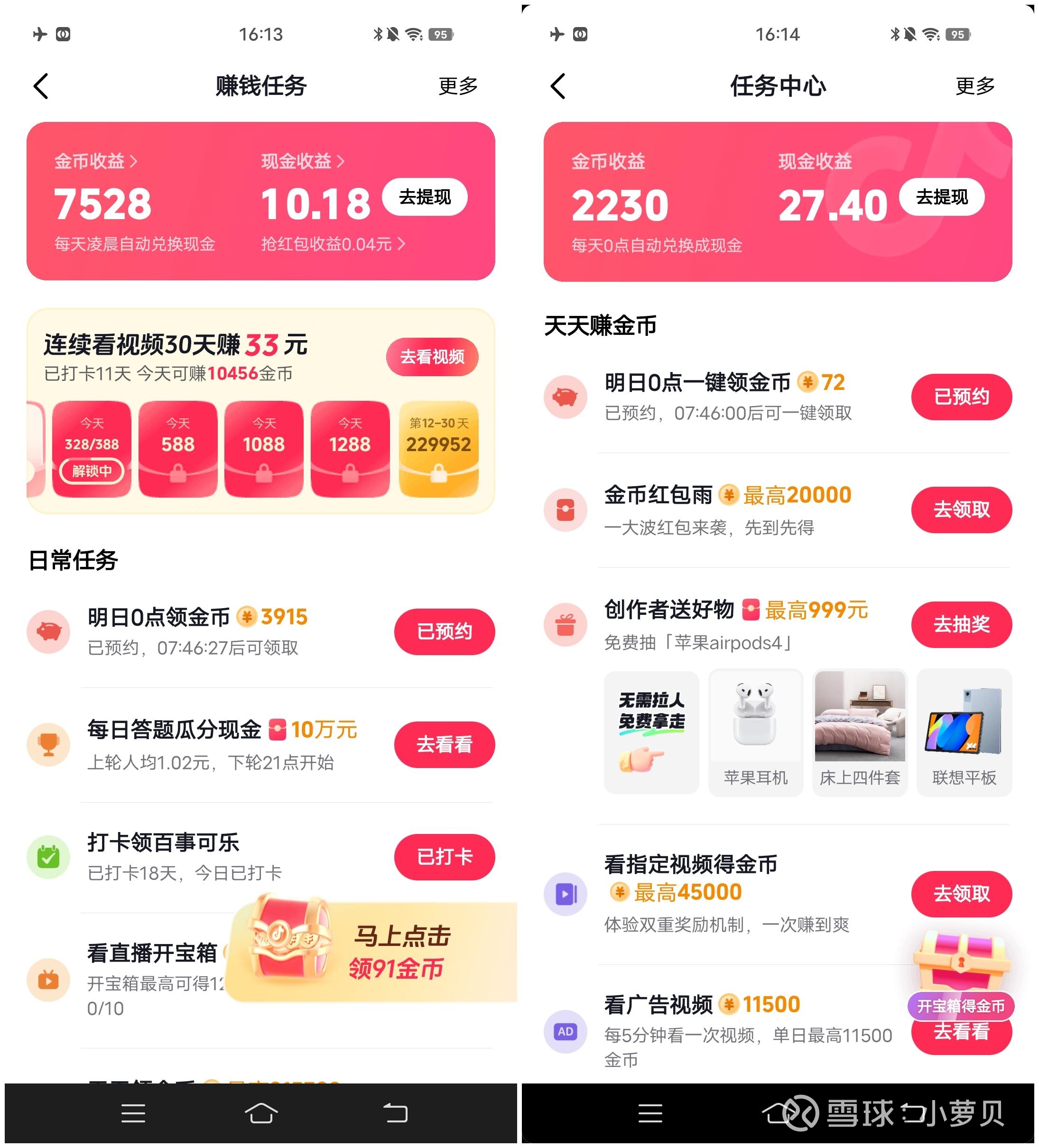 抖音极速和抖音差不多,没什么好说的,主要是太占用个人时间。平时主要签签到,新手期福利还凑活,每天都有几块钱收入,现在也就这么回事了,打卡领奖品是个亮点,如果发现拉人就果断放弃,有时候商城会有一些0.01元的小福利,其他也就一般。
