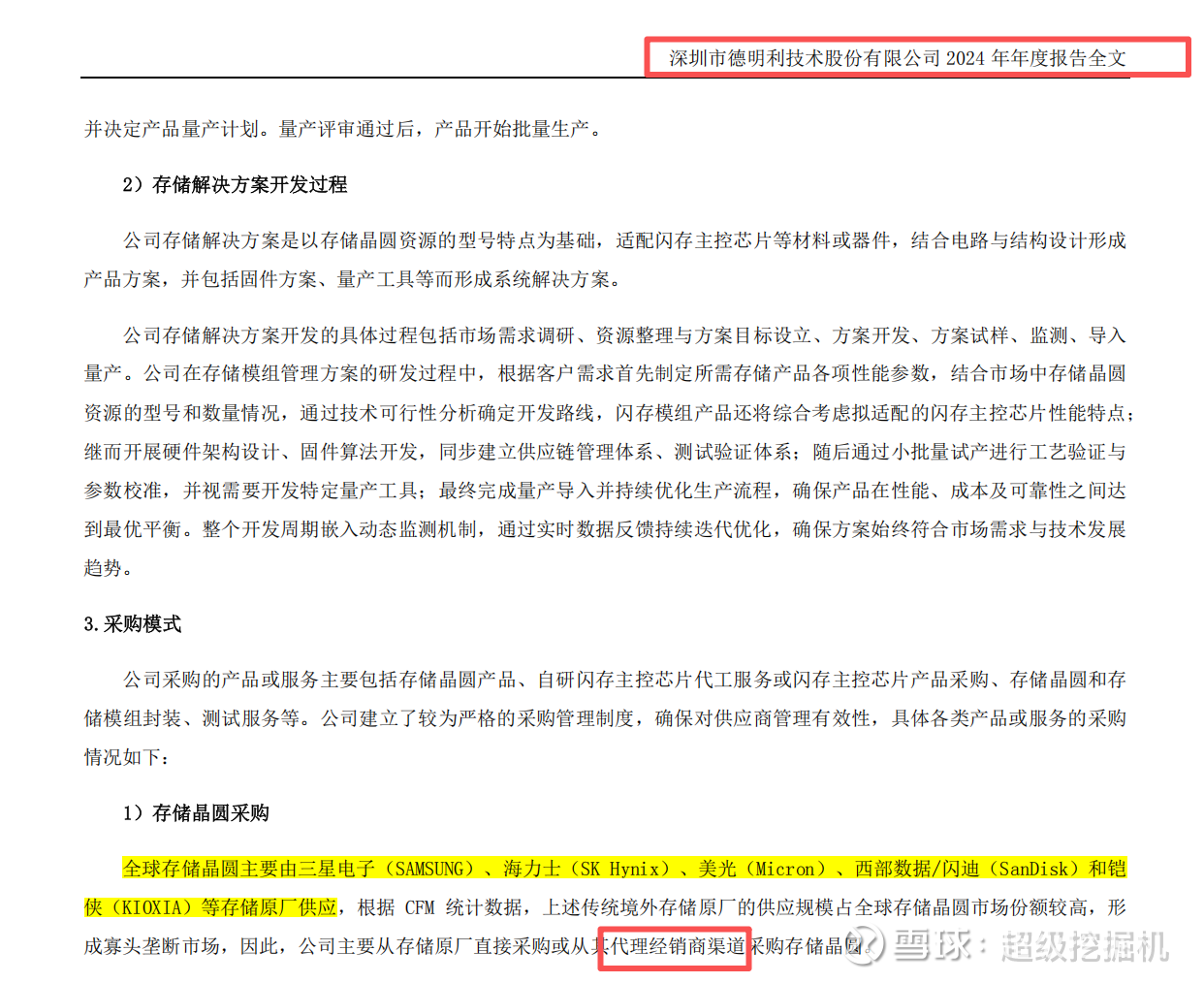 $德明利(SZ001309)$ :从国际大厂或代理商(好上好、中电港)采购存储晶圆,再通过自己专利技术加工厂存储,随着技术不断突破未来有望成为国内存储哈行业的自主可控大厂(向长江存储、长鑫存储看齐)
