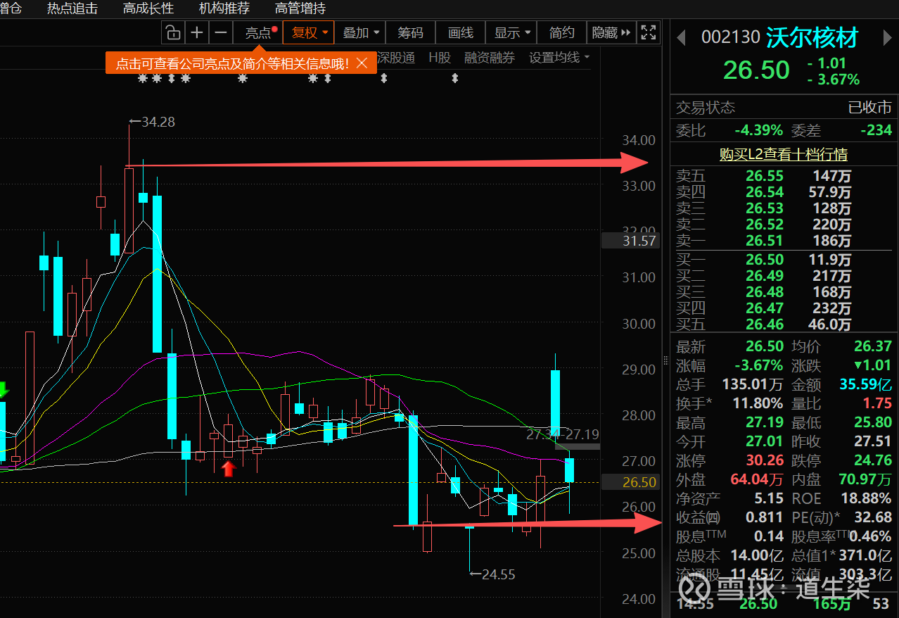 那么什么时候介入?沃尔核材止跌信号出现,就可以介入,短线选手可以套利;中线选手可以享受估值回归,