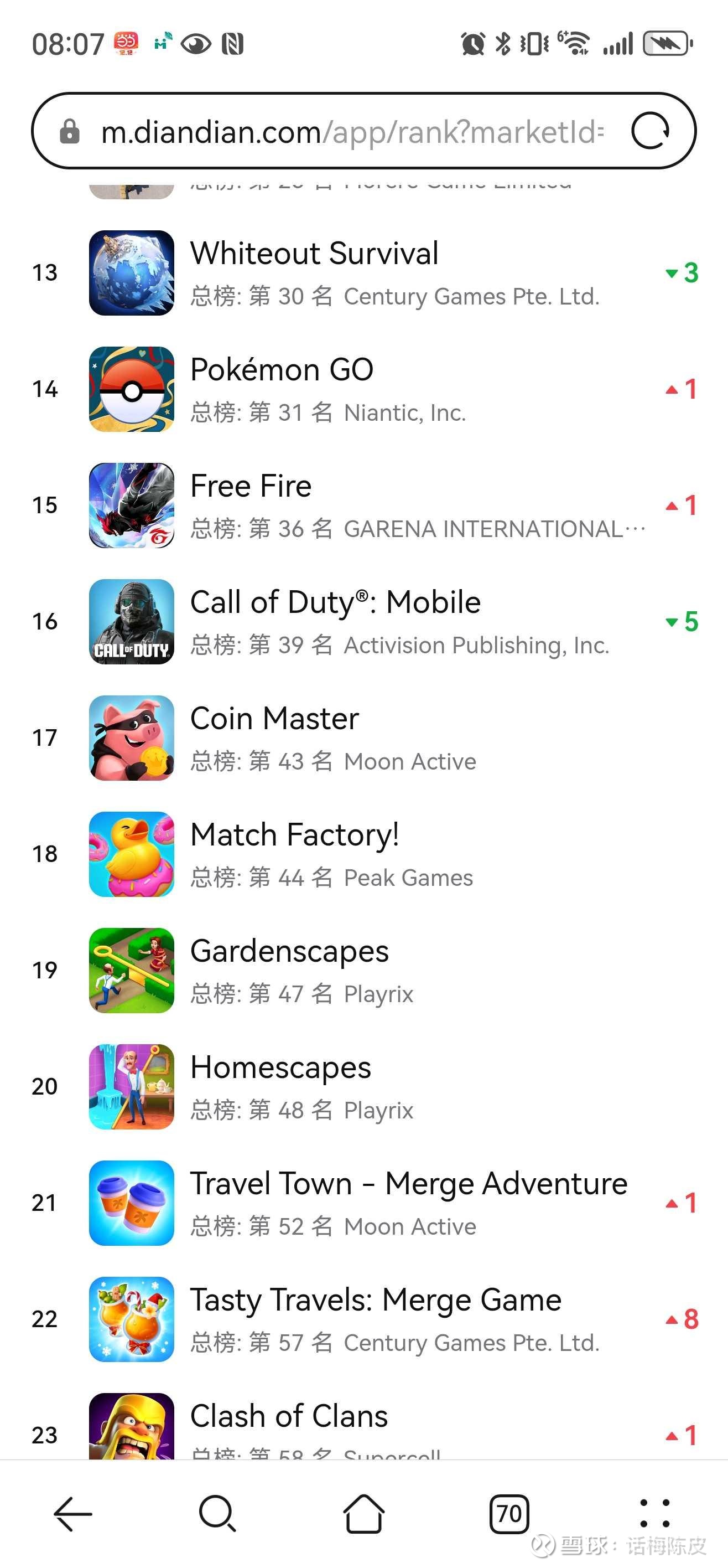 今天tasty travels美日韩加英澳全部创历史新高,美区更是一下子往前突破了7位到达了22名的位置,点点互动的第三款月流水两千万美金的全球爆款已确认无疑。