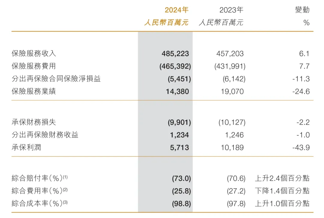 这篇笔记只拆解一个保险生意的术语:分出再保险合同保险净损益。下图摘自中国财险2024年财报: