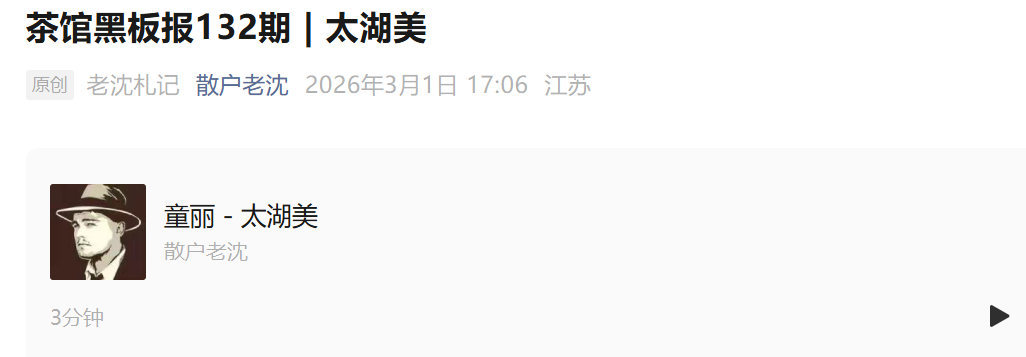 开篇音乐一曲《太湖美》。老朋友们立马知道,江苏文旅民间宣传员散户老沈要出场了。