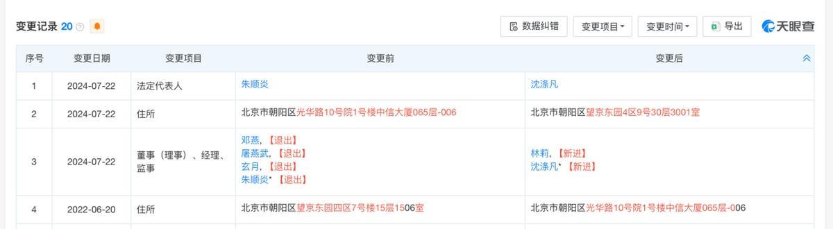 去年12月,阿里健康发布公告,原董事会主席、非执行董事朱顺炎退出,阿里健康CEO沈涤凡被提名为董事长。天眼查APP显示,2024年7月份,阿里健康科技(中国)有限公司法定代表人就已经变更为沈涤凡。