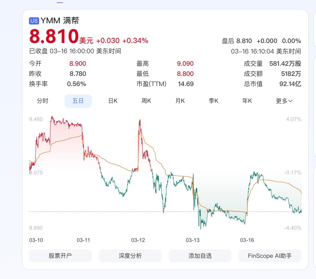 在财报发布后,市场对满帮的态度似乎仍有向下波动的趋势。